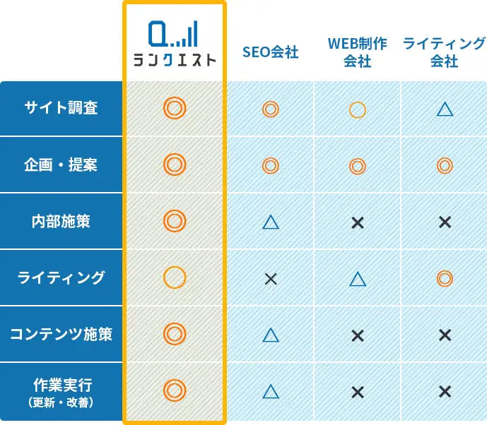 ランクエストでは「企画~実行~改善」まで行っており、お客様には「Yes/No」のご判断を頂くのみで大丈夫です!